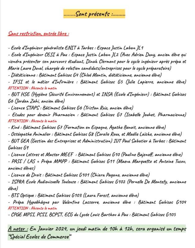 Forum des Formations et des Métiers, vendredi 1er décembre 2023, toutes les infos au cas où certains perdraient leurs feuilles ou la mémoire !!