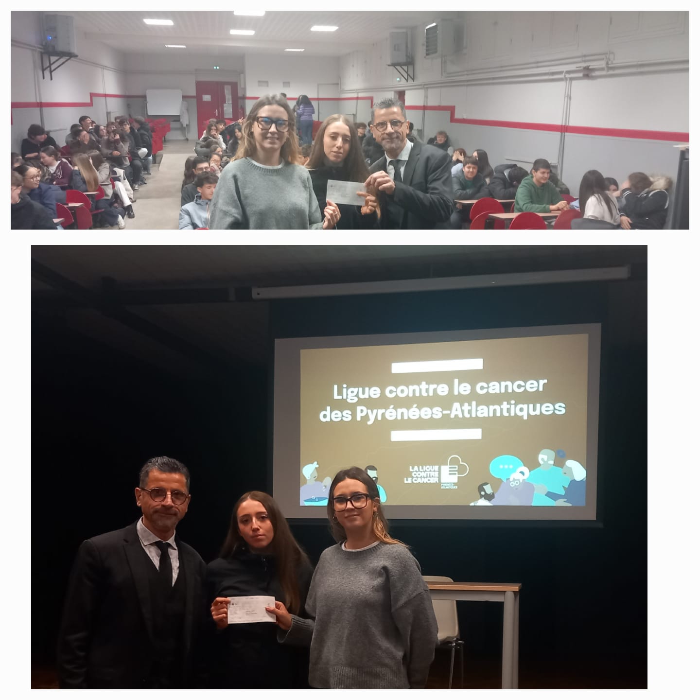 La conférence a aussi été l’occasion d’un moment fort : la remise officielle d’un chèque de plus de 800 euros à la Ligue contre le cancer, fruit de la générosité et de l’engagement des familles et des élèves.