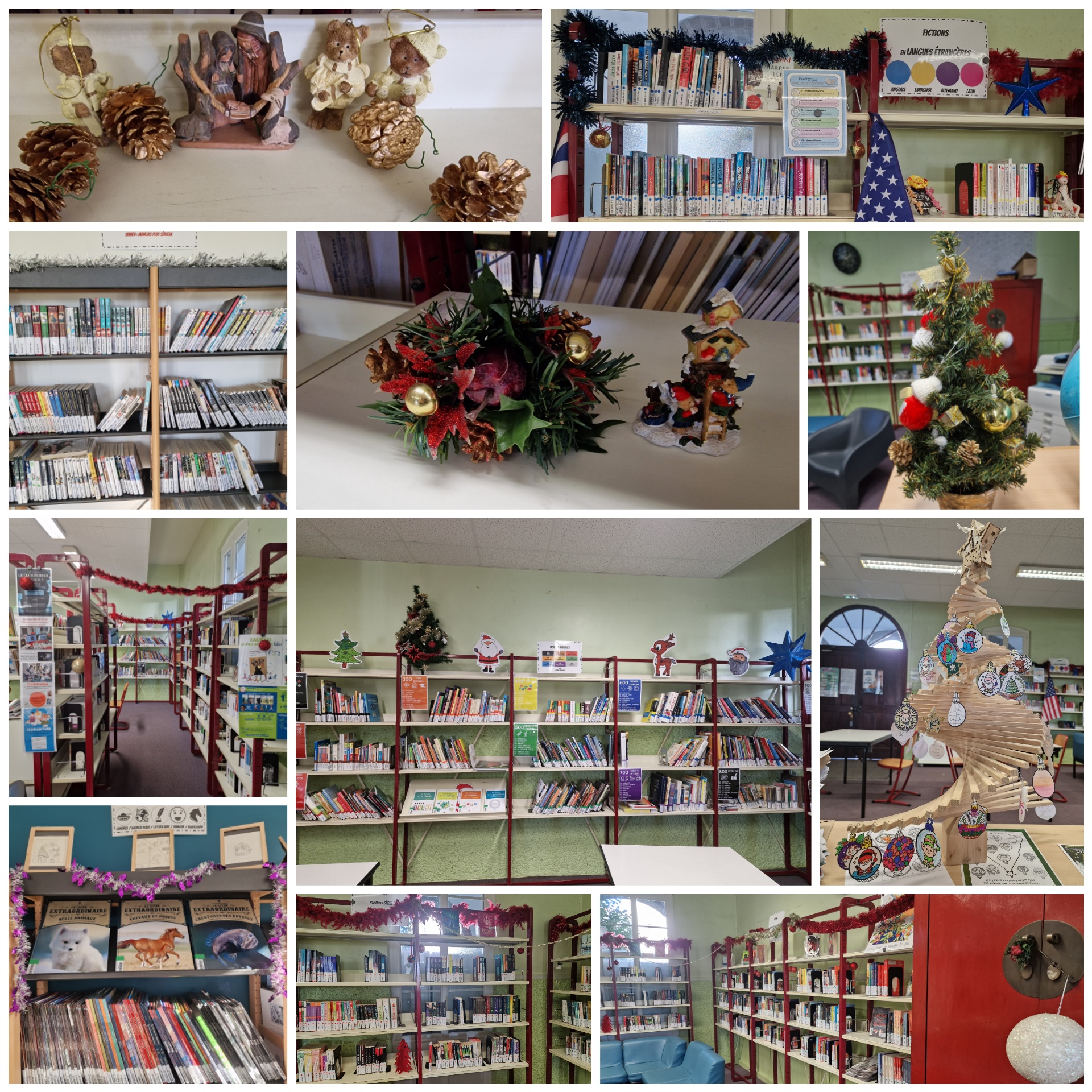 Jeudi 11 décembre 2025, de 12h45 à 13h40 : voici nos quatre 5° qui se sont amusées à décorer le CDI. Béatrice Constanty, notre Documentaliste, leur a laissé liberté totale. Elles sont allées chercher toutes les décos qu’elles ont pu trouver dans la salle d’archives et ont fait preuve de beaucoup d’imagination pour que tout soit bien aux couleurs de Noël. Merci à Pearl, Eve, Elise et Manon !!