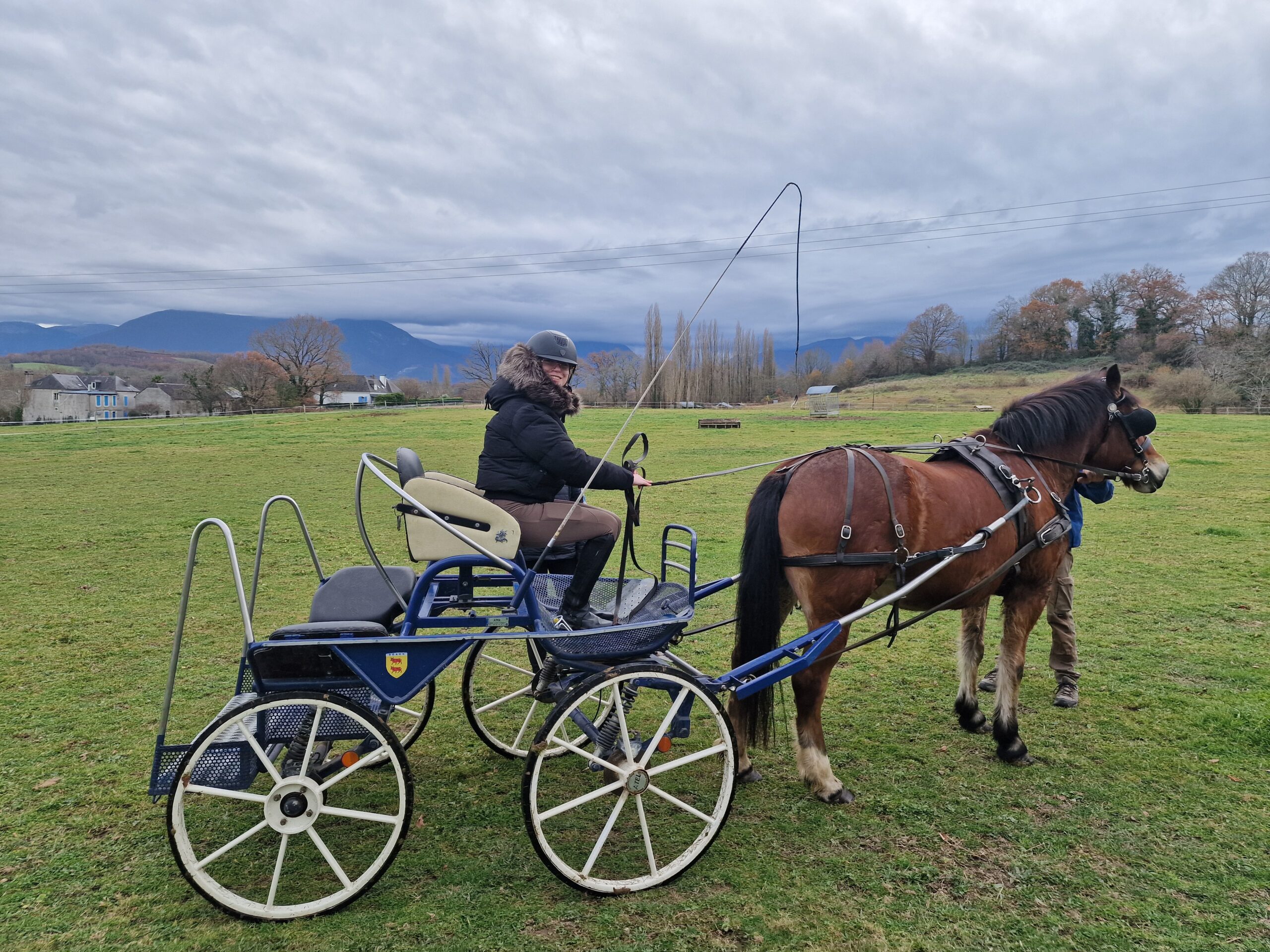 Mardi 16 décembre 2025, 15h45 : une calèche à St Jo ! Cours de calèche pour tous les Terminales CGEA du Lycée Agricole du Pays de Nay ! Pour guider, c’est presque pareil qu’à cheval, des rênes, une technique précise, et c’est parti !