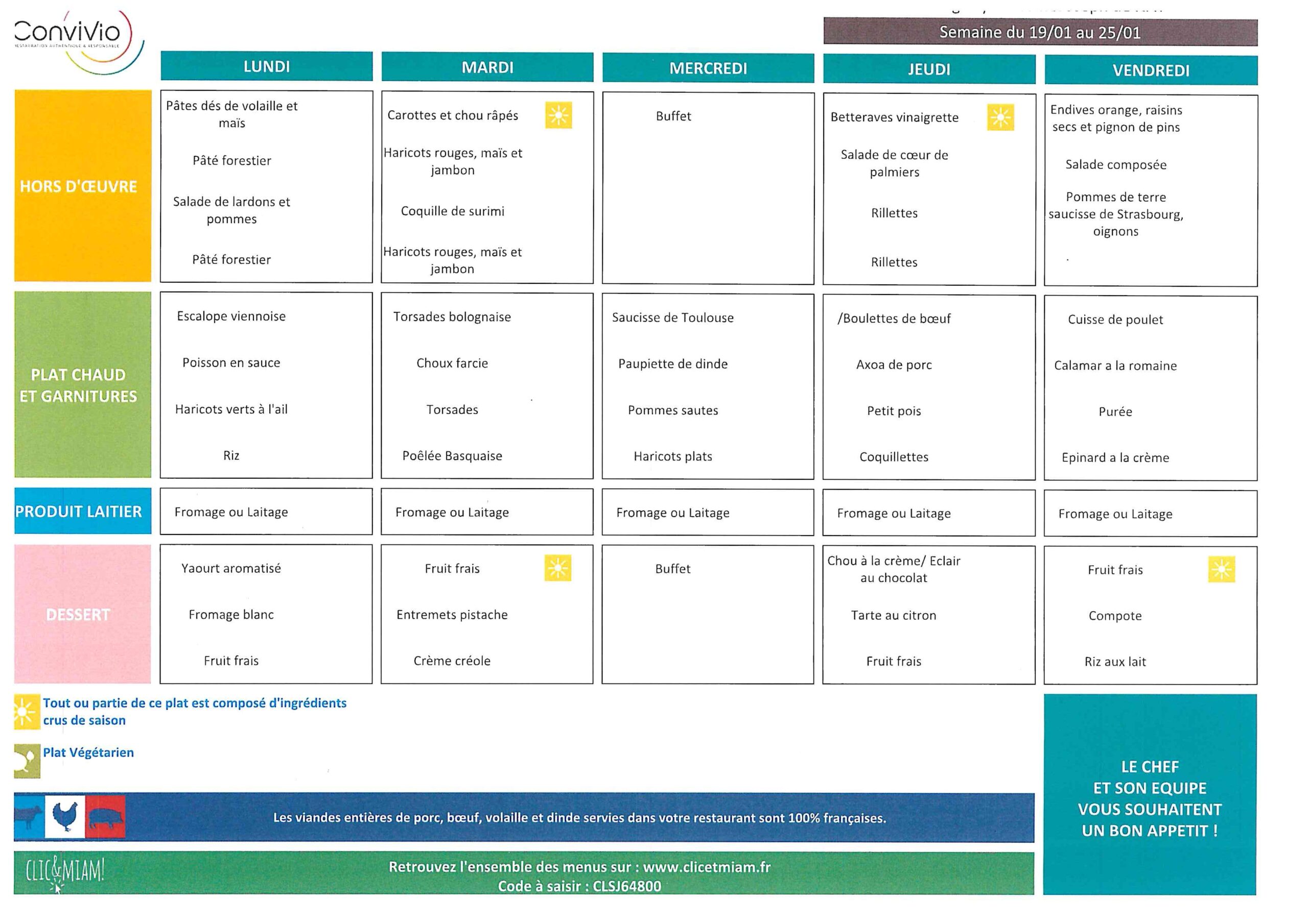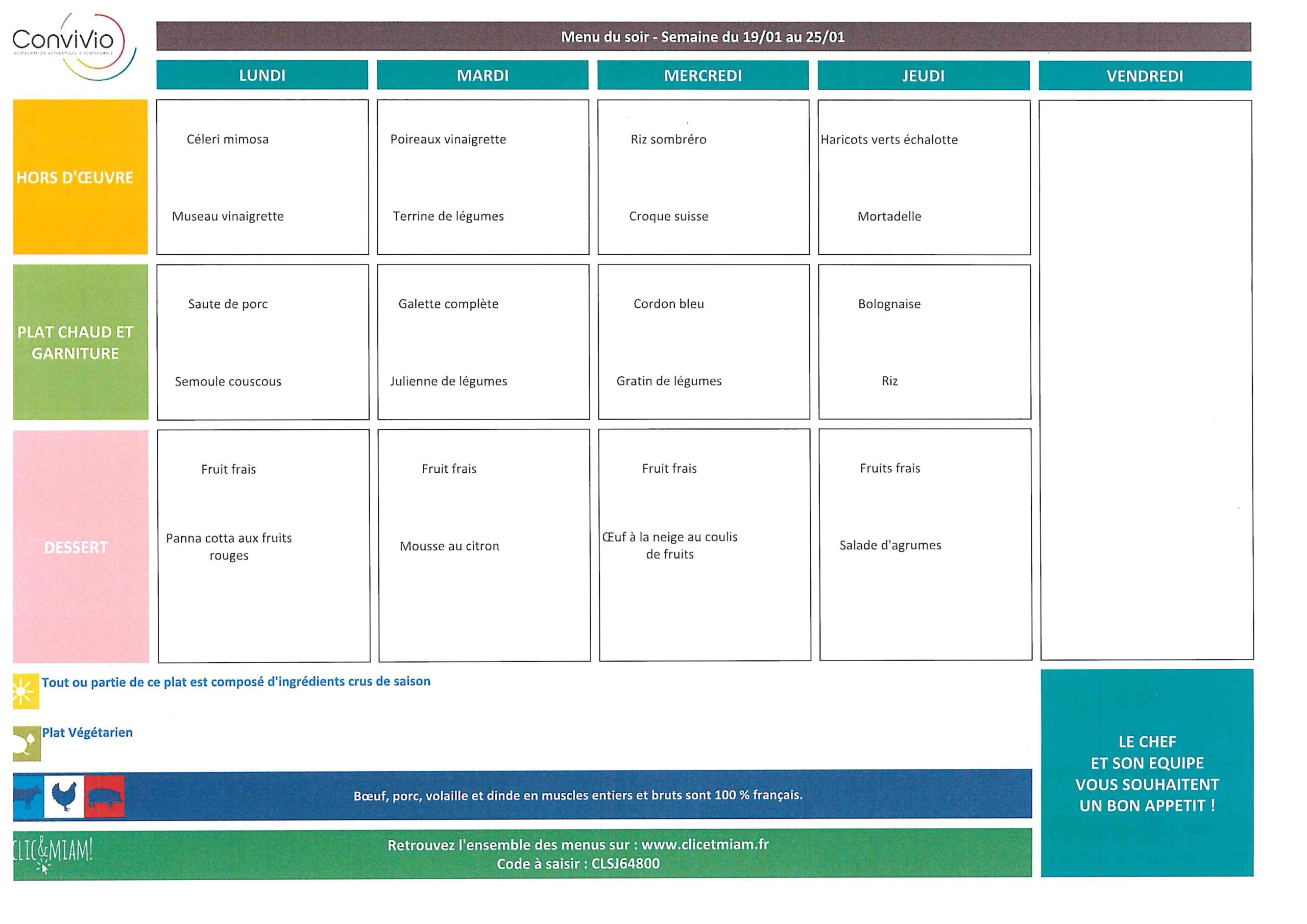 Au menu de la semaine du 19 au 23 janvier 2026