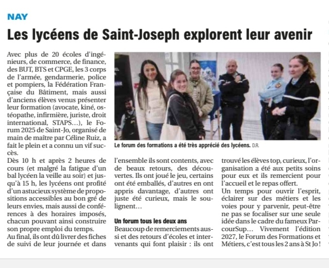 Samedi 20 décembre 2025, Pyrénées Presse, le Forum des Formations et Métiers de St Jo à l’honneur…..