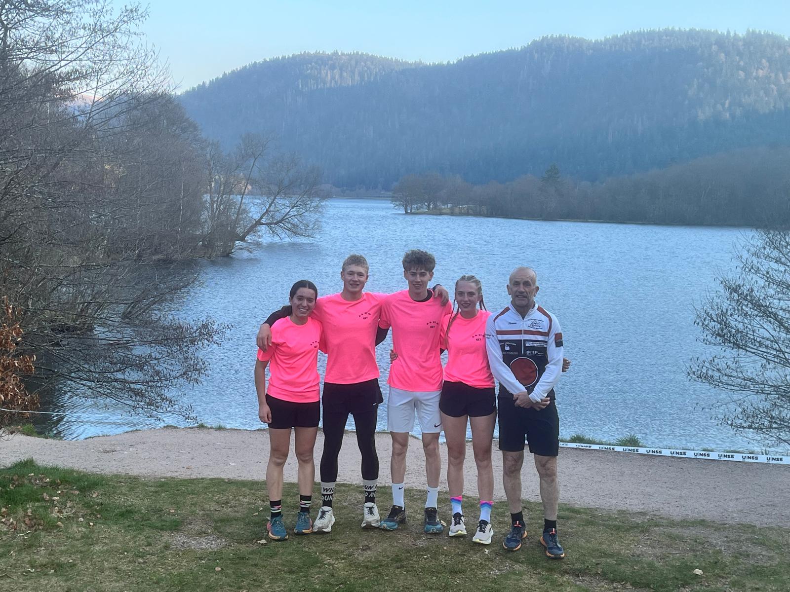 Mercredi 18 mars 2026, France UNSS de Bike and Run dans les Vosges. Après un départ à 5h du mat’ et 10h30 de route, en place à Xonrupt-Longemer !! Enregistrement de l’équipe et petit footing et repérage au bord du lac, zone de compétition de demain jeudi !! Yapluka !!