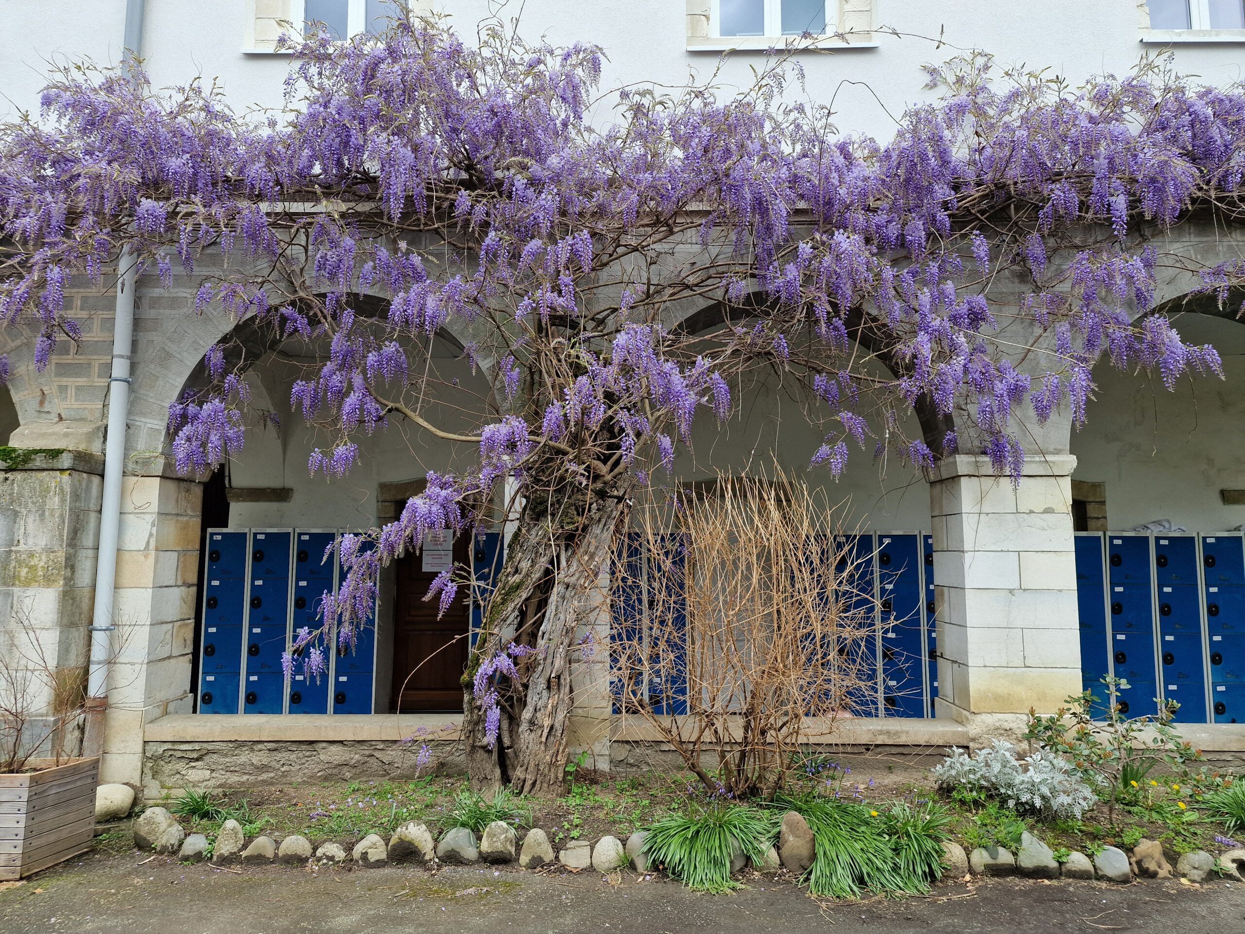 Par Yves Ginesta • 1 Avr, 2026 • Catégorie: General •Chaque printemps, un spectacle discret mais spectaculaire s’offre à nous dans le cloître de l’établissement. La glycine, plantée il y a plus de cent ans, entre en floraison et transforme les lieux en un véritable tableau vivant. Ses grappes de fleurs tombantes, délicates et parfumées, attirent le regard, invitent à ralentir et à prendre une photo, comme aujourd’hui, pour vous la partager.