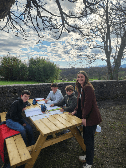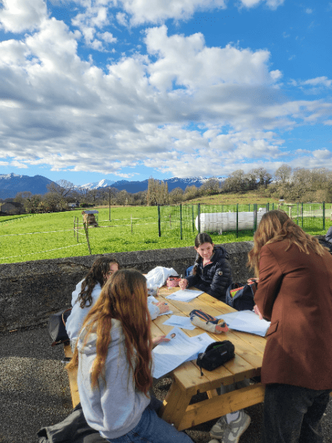 Vendredi 13 mars 2026, cours dehors ce matin sur les 2 premières heures avec les 5° de Manon Ruiz et Chloé Montin, notre diététicienne. On a pu profiter pleinement du cadre et des nouvelles tables d’extérieur pour effectuer la partie Svt du projet interdisciplinaire : adapter une recette de gâteau au yaourt pour soit un régime sans Gluten, soit sans lactose, soit sans œufs et fruits à coques ou soit un régime sain et diététique.
