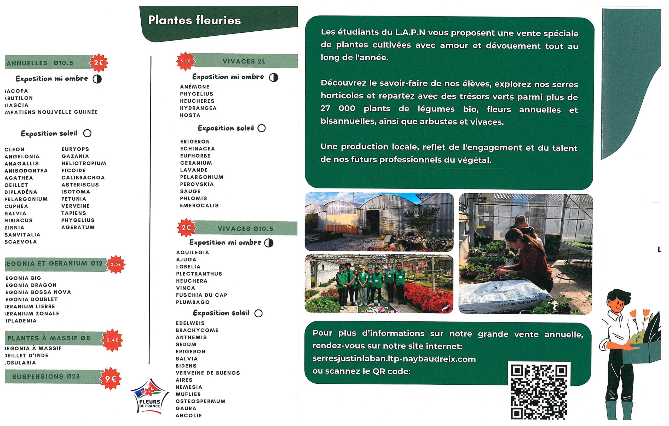 Lycée agricole du Pays de Nay, vente de plants de légumes bio, fleurs ainsi que arbustes et vivaces !! RV aux serres Justin Laban à partir du lundi 27 avril 2026