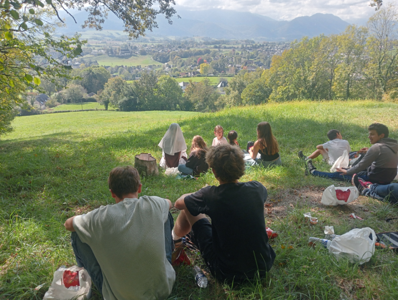 Mardi 15 octobre 2025, 13h10, pique nique aumônerie à l’Oppidum d’Asson pour nos collégiens avec un super témoignage de nos grands Nathanael et Baptiste. C’était super, vraiment !!